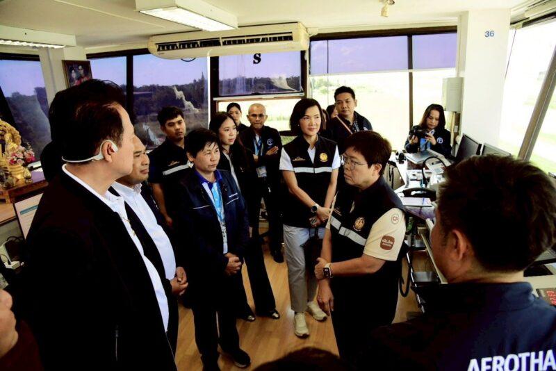 จากนั้นรัฐมนตรีช่วยว่าการกระทรวงคมนาคม ได้เดินทางไปตรวจเยี่ยมการปฏิบัติงานของเจ้าหน้าที่ ณ หอควบคุมการจราจรทางอากาศสุโขทัย โดยมอบหมายให้บริษัท วิทยุการบินแห่งประเทศไทย จำกัด ยกระดับการให้บริการจราจรทางอากาศให้มีศักยภาพและเกิดความปลอดภัยสูงสุด จัดให้มีระบบอุปกรณ์ที่ทันสมัยเพื่อเพิ่มประสิทธิภาพการคมนาคมบริเวณรอบสนามบิน รวมถึงให้จัดทำแผนเฝ้าระวังป้องกันและติดตามสถานการณ์อุทกภัยอย่างใกล้ชิด โดยทุกปีที่ผ่านมาหอควบคุมการจราจรทางอากาศสุโขทัย ยังไม่เคยประสบกับปัญหาน้ำท่วม อย่างไรก็ตามหากเกิดเหตุฉุกเฉินผู้ใช้บริการสนามบินไม่สามารถเดินทางกลับที่พักได้ หอควบคุมการจราจรทางอากาศพร้อมสนับสนุนที่พักชั่วคราวให้กับประชาชน