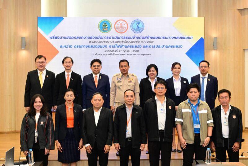 กรมทางหลวงชนบท (ทช.) ได้มีการจัดงานบันทึกข้อตกลงความร่วมมือการดำเนินการรวมจ้างก่อสร้างของกรมทางหลวงชนบทตามงบประมาณรายจ่ายประจำปี 2569 ซึ่งได้ทำการลงนามในบันทึกข้อตกลงร่วมกันระหว่างกรมทางหลวงชนบท (ทช.) สังกัดกระทรวงคมนาคม และการไฟฟ้านครหลวง (กฟน.) การประปานครหลวง (กปน.) สังกัดกระทรวงมหาดไทย โดยในส่วนของ ทช. มีนายพิชิต หุ่นศิริ อธิบดีกรมทางหลวงชนบท เป็นผู้ร่วมลงนาม และทางด้านของ กฟน. มีนายวิลาศ เฉลยสัตย์ ผู้ว่าการการไฟฟ้านครหลวง เป็นผู้แทนในการลงนาม และ กปน. มีนางสาวสุวรา ทวิชศรี ผู้ว่าการการประปานครหลวง เป็นผู้แทนในการลงนามเช่นกัน ในโอกาสนี้มีนายยงยุทธ์ เพ็งเมือง รองอธิบดีกรมทางหลวงชนบท (ด้านดำเนินงาน) นายอดิเทพ ตีระมาศวณิช ผู้อำนวยการ สำนักก่อสร้างทาง รักษาการวิศวกรใหญ่ (ด้านบำรุงรักษาทางและสะพาน) กรมทางหลวงชนบท นายจีระพงษ์ ปิณฑะบุตร ผู้อำนวยการสำนักสำรวจและออกแบบ รักษาการวิศวกรใหญ่ (ด้านสำรวจและออกแบบ) กรมทางหลวงชนบท นายรณชัย เรืองยุทธ ผู้ช่วยผู้ว่าการปฏิบัติการระบบส่ง นางทิมาพร วิมลอนุพงษ์ ผู้ช่วยผู้ว่าการรักษาการในตำแหน่ง รองผู้ว่าการการประปานครหลวง ร่วมเป็นพยานในการลงนามบันทึกข้อตกลงในครั้งนี้ ณ ห้องประชุมธารสิทธิ์พงษ์ กรมทางหลวงชนบท บางเขน กรุงเทพฯ