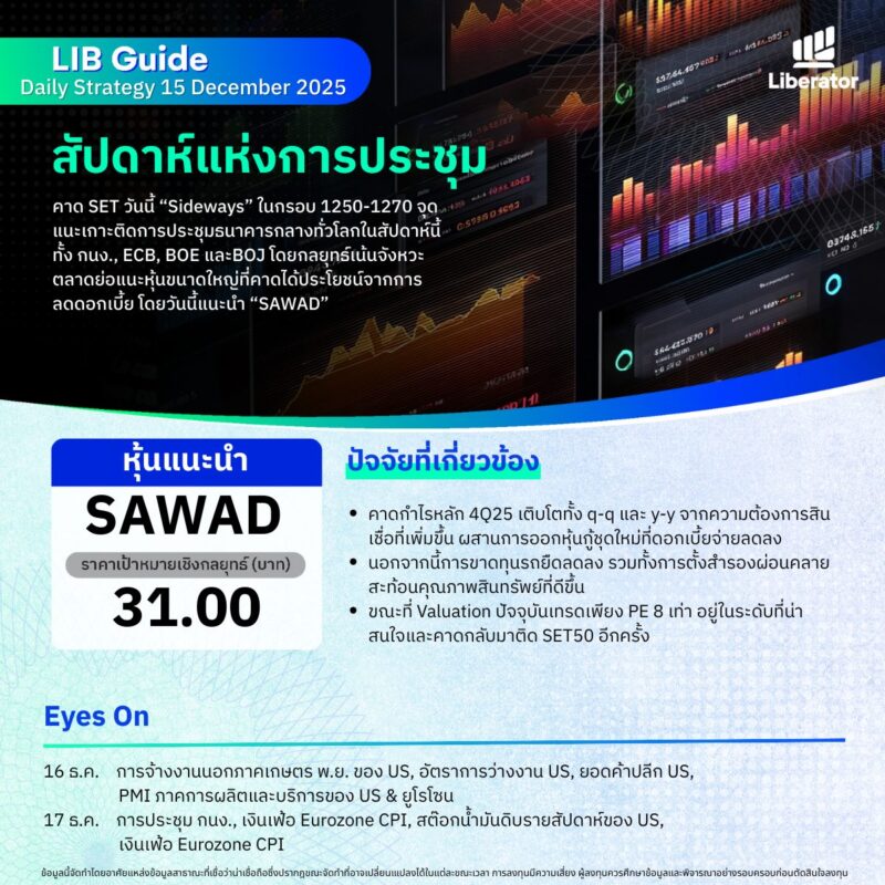 วันที่ 15 ธันวาคม 2568 บริษัทหลักทรัพย์ ลิเบอเรเตอร์ จำกัด หรือ “Liberator” (บล.ลิเบอเรเตอร์) ออกบทวิ
