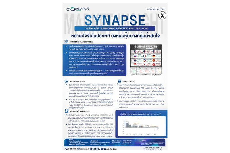 วันที่ 16 ธันวาคม 2568 บริษัทหลักทรัพย์ เอเซีย พลัส จำกัด (ASPS) เปิดเผยบทวิเคราะห์ระบุว่า ตลาดหุ้นไทย (SET Index) ปรับตัวขึ้นอย่างโดดเด่นเมื่อวานนี้ ด้วยอัตราการเพิ่มขึ้น +1.54% นับเป็นหนึ่งในการปรับตัวขึ้นที่แรงที่สุดในกลุ่มตลาดโลก การฟื้นตัวนี้ได้รับแรงหนุนจากเม็ดเงินที่ไหลเข้าสู่หุ้นกลุ่ม VALUE อย่างต่อเนื่องเป็นสัปดาห์ที่สาม พร้อมกับการแข็งค่าของเงินบาทกว่า 1.8% เมื่อเทียบเดือนต่อเดือน (MTD) ซึ่งช่วยหนุนให้ FUND FLOW ไหลเข้าตลาดหุ้นไทย
