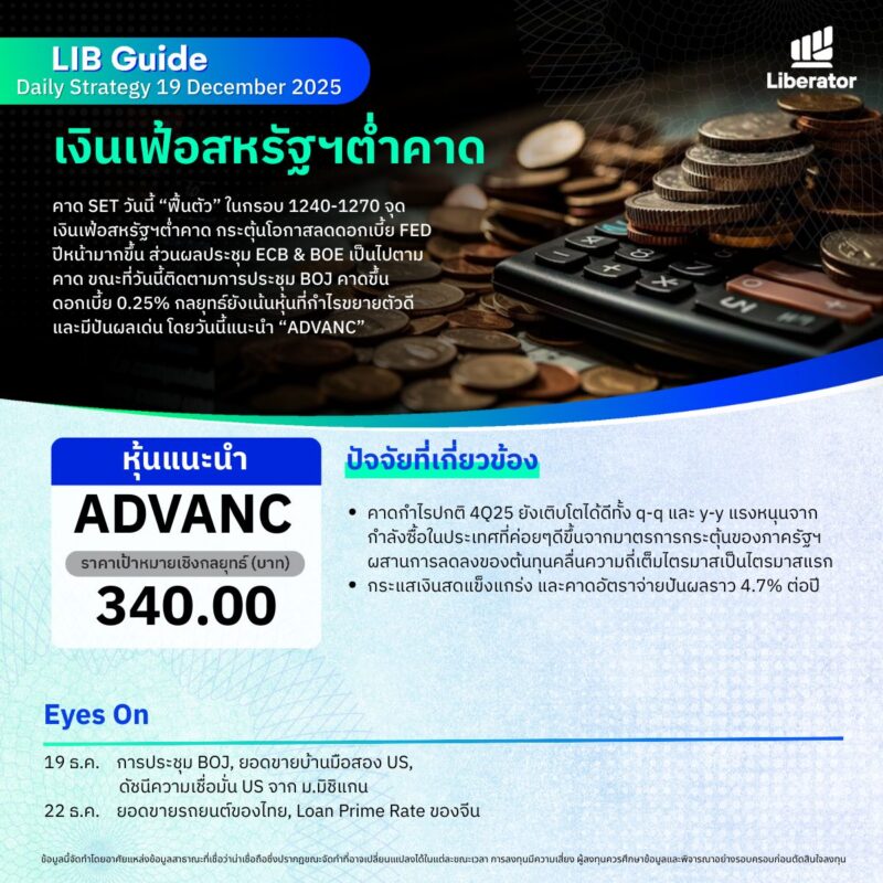 วันที่ 19 ธันวาคม 2568 บริษัทหลักทรัพย์ ลิเบอเรเตอร์ จำกัด หรือ “Liberator” (บล.ลิเบอเรเตอร์) ออกบทวิ