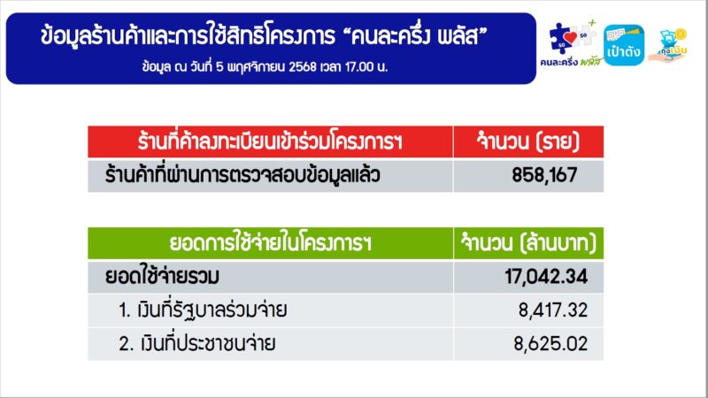 ยอดใช้จ่ายคนละครึ่งพลัสคึกคัก 7วัน พุ่งทะลุ 1.7 หมื่นล้านบาท